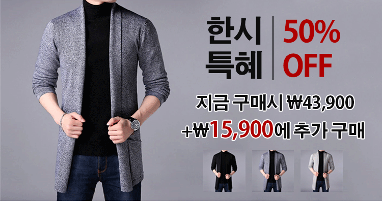 터치감이 부드럽고 착용감이 따뜻한 고품질 캐시미어 소재의 가디건,신사적인 남성의 매력을 어필할수있는 트렌디한 디자인감! 지금 추가 구매시₩15,900!